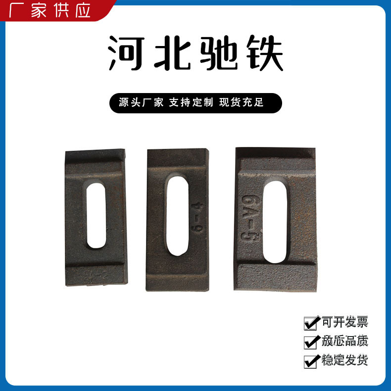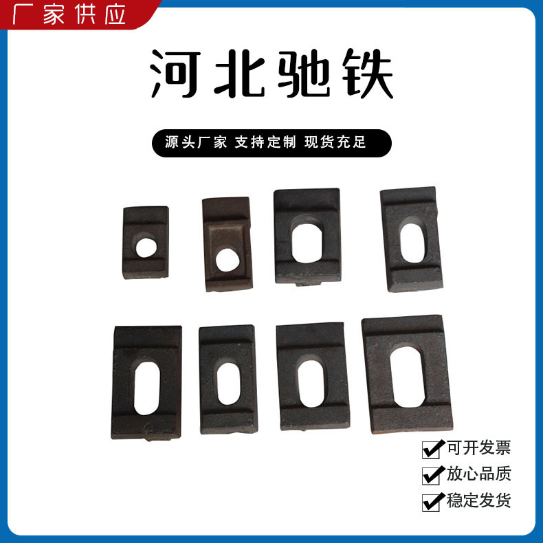 主要產(chǎn)品:鐵路配件、行車配件、工礦配件、魚尾板、道釘、壓軌器、軌道壓板、軌距拉桿、護(hù)軌扣板、T型螺栓、魚尾螺栓、彈條、軌距擋板