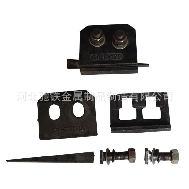 壓軌器按可劃分為WJK、SWJK、HWJK系列TG38、TG43、TG50、TG60、QU70、QU80、QU100、QU120由底座、上蓋、穿肖、彈平墊圈組成。